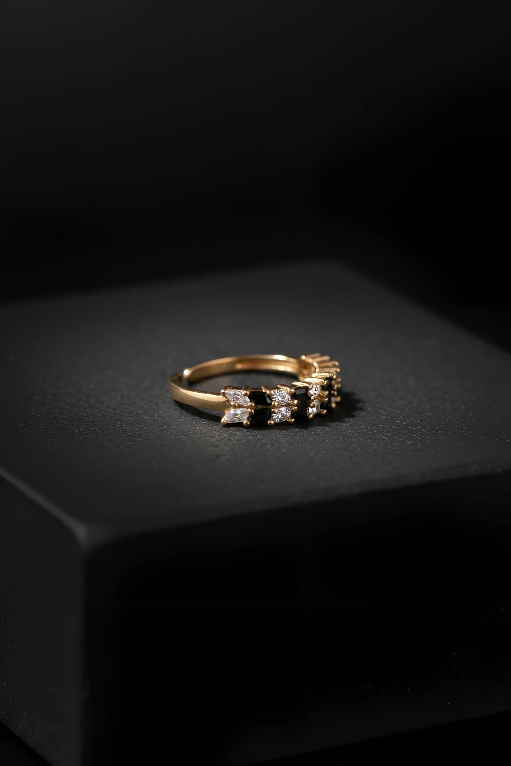 The open, adjustable band ensures a comfortable, customized fit for almost any finger size, providing flexibility without sacrificing style. The high-polish gold-tone finish enhances its versatile and timeless appeal, making it a stunning addition that complements both casual and formal looks.