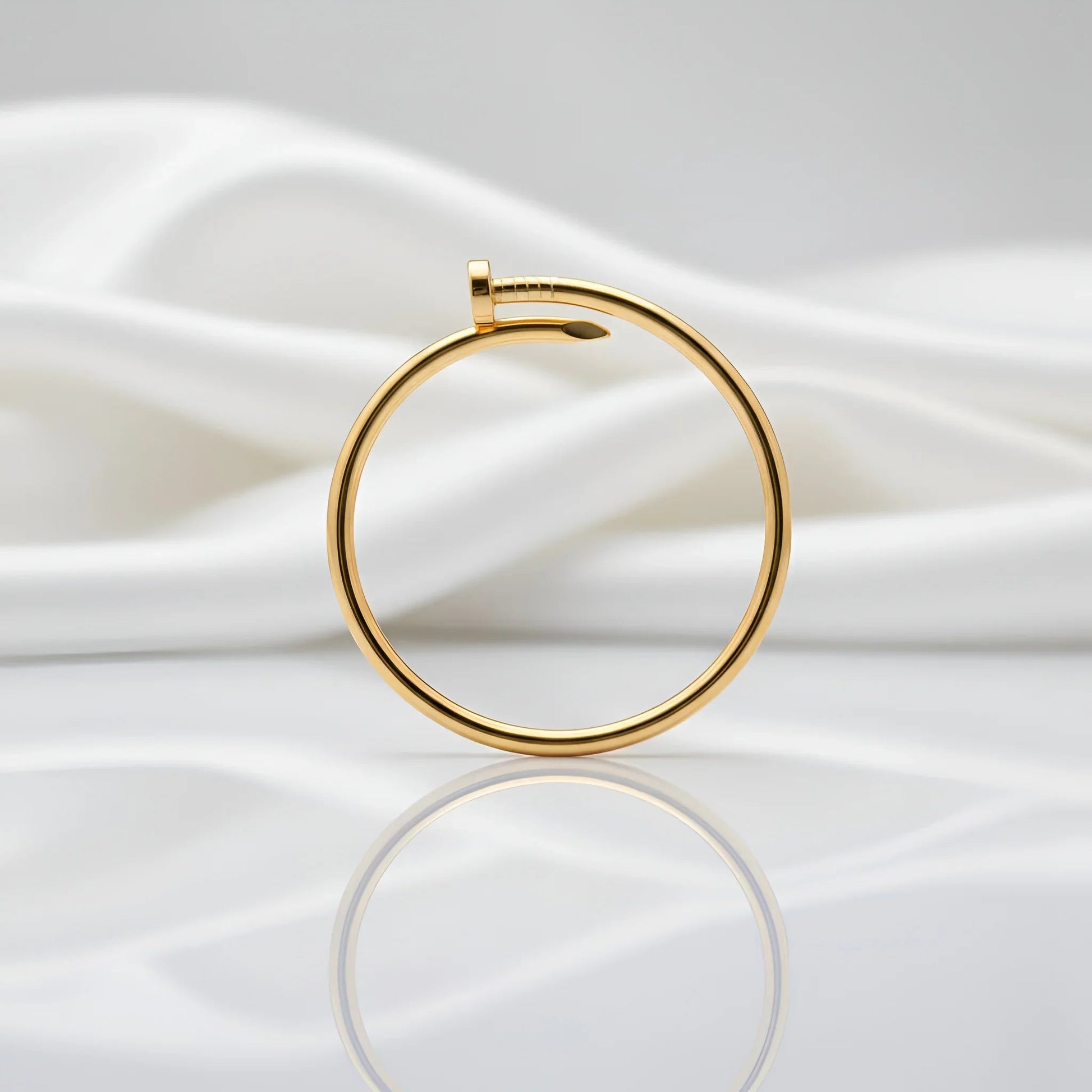Discover the Chic Gold-Toned Nail Bangle Bracelet, the perfect solution to elevate your everyday accessories with a touch of modern edge. This unique bracelet combines an industrial-inspired design with a luxurious polish, giving you a bold yet minimalist look that effortlessly captures attention. Whether you're dressing up for a special occasion or adding flair to your casual wardrobe, this bracelet makes a standout statement.