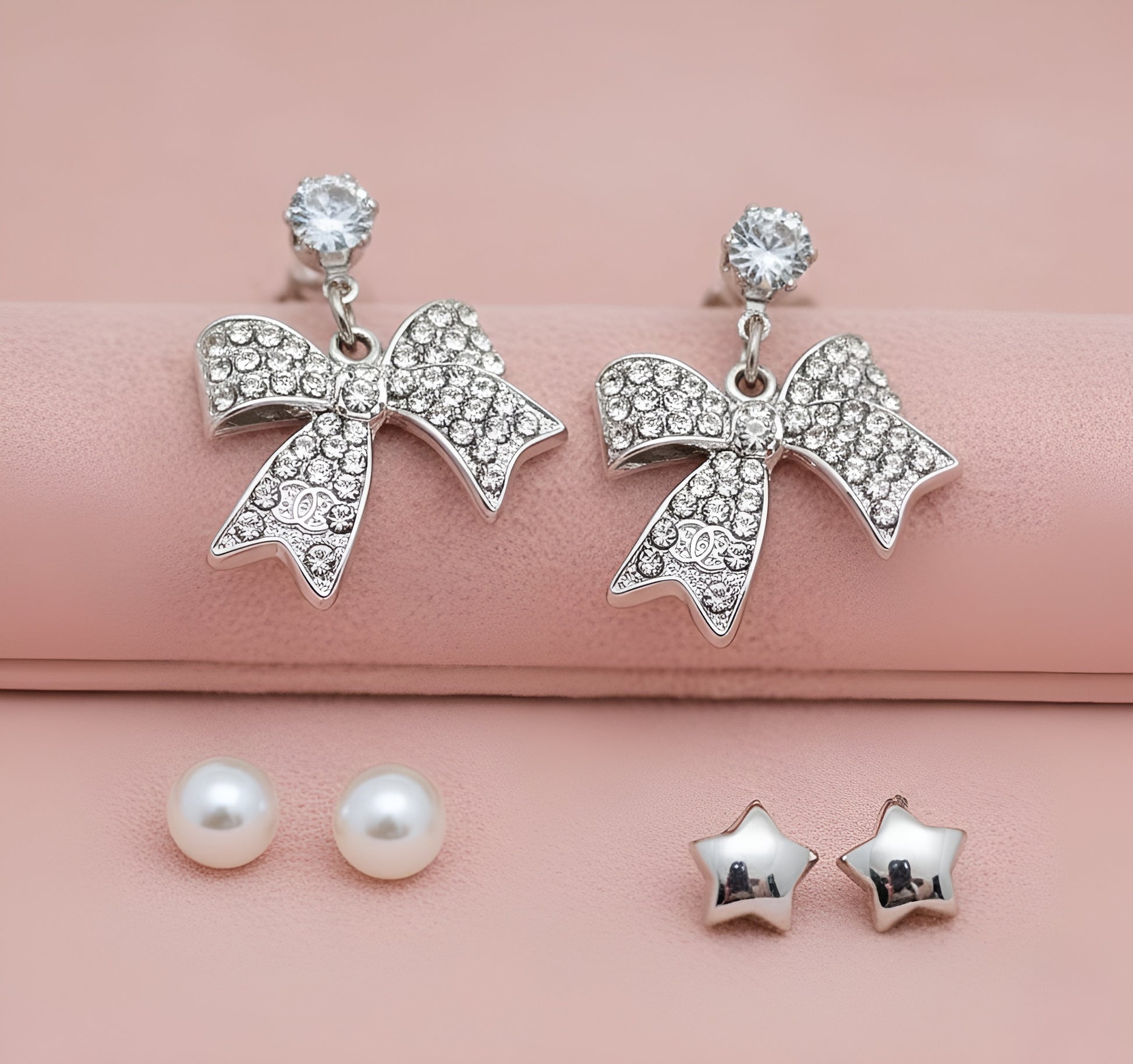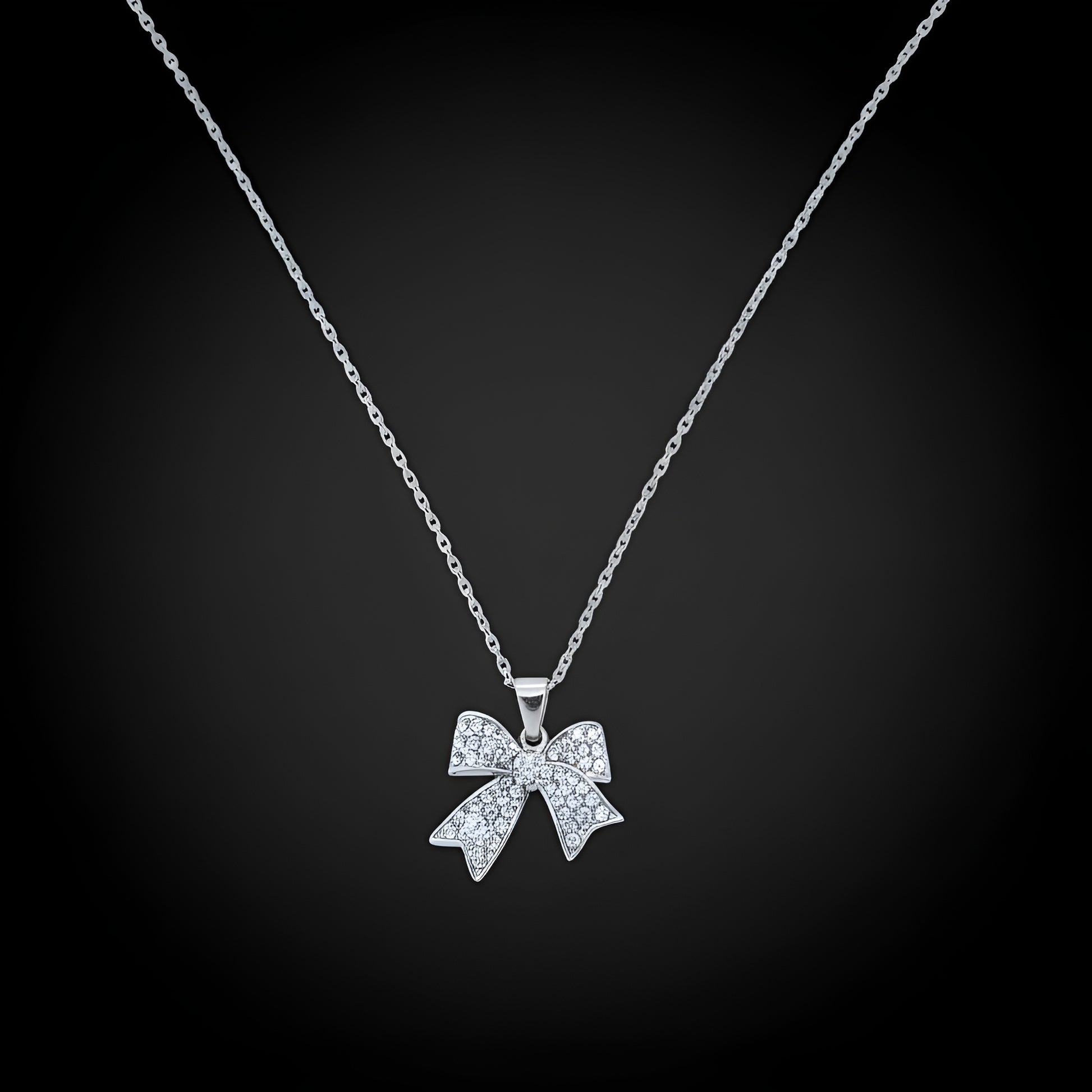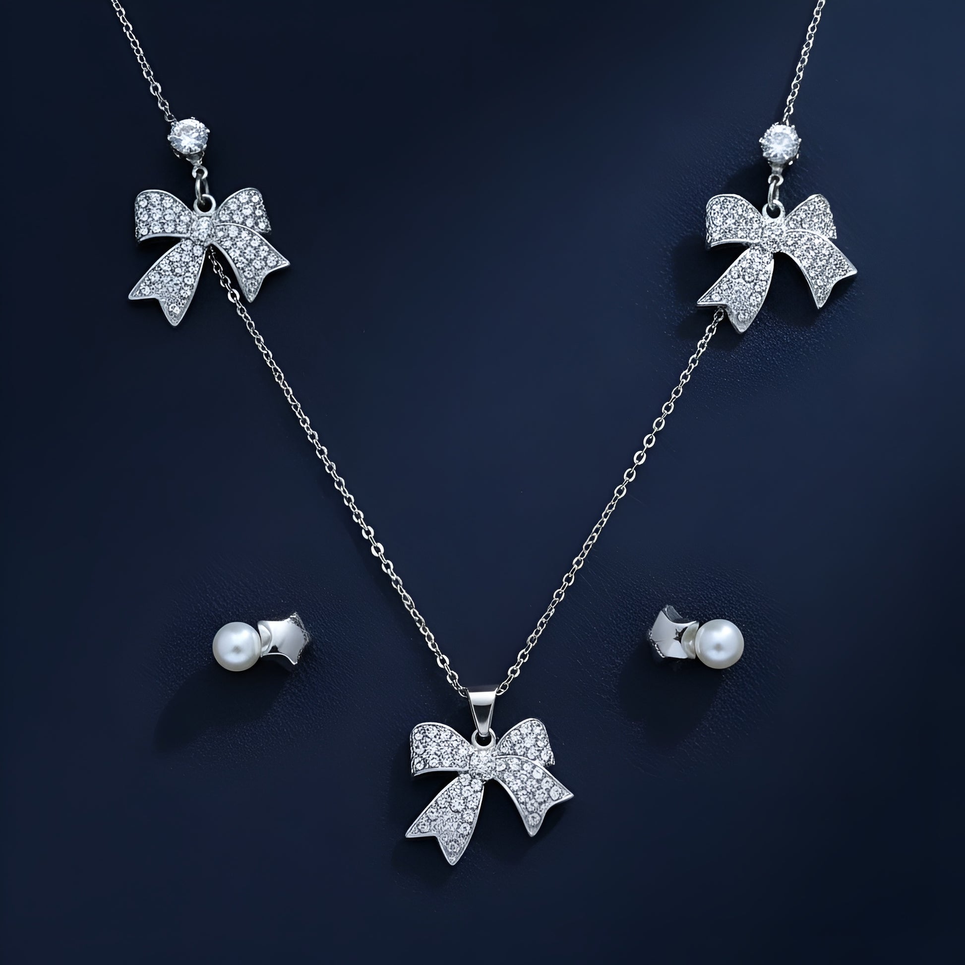 Silver Plated Fancy Wear Bow Necklace and Studs