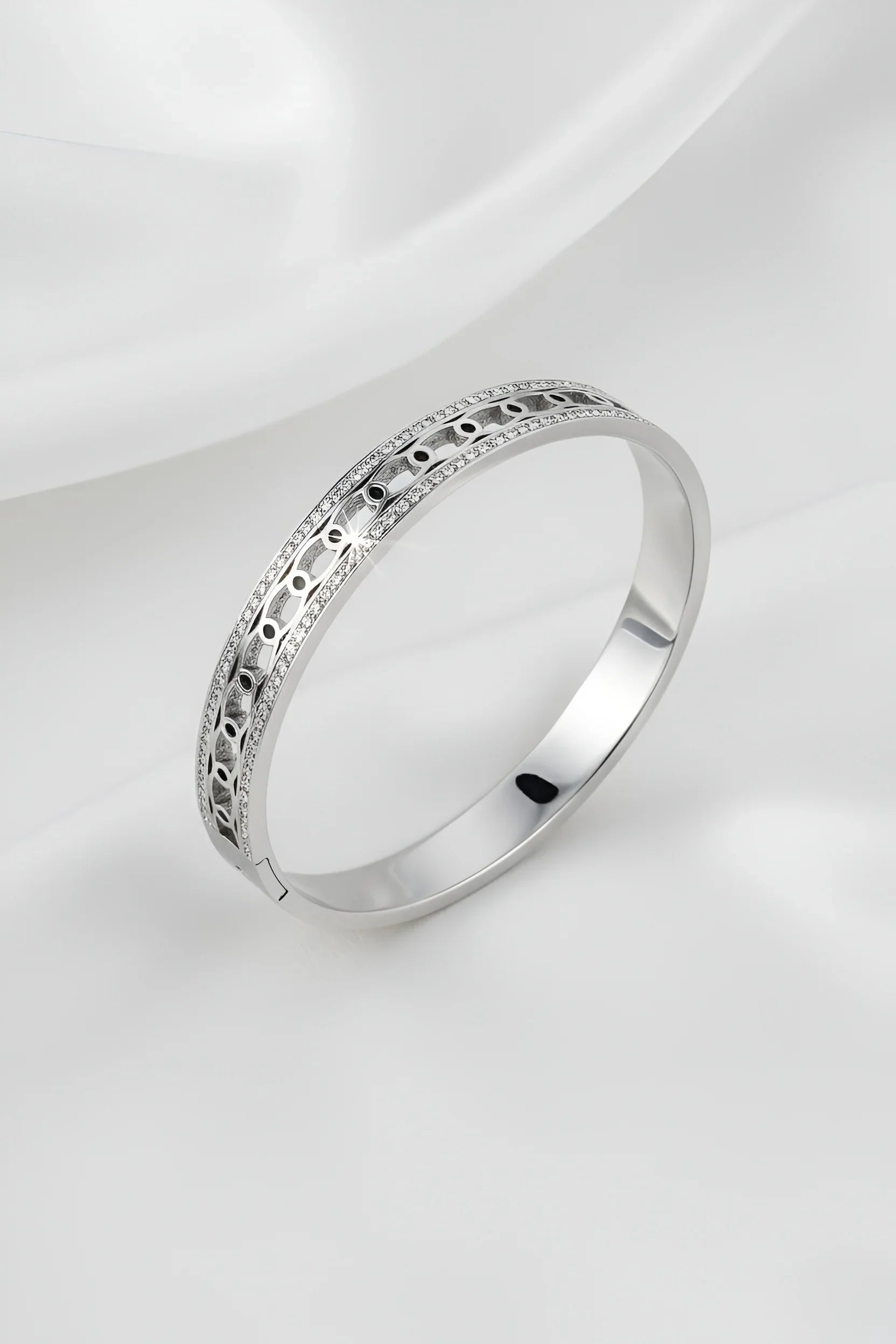 - A convenient and secure hinged clasp guarantees a comfortable fit and easy wear throughout your busy day or evening. This user-friendly clasp ensures the bracelet stays safely in place while maintaining a tailored style.