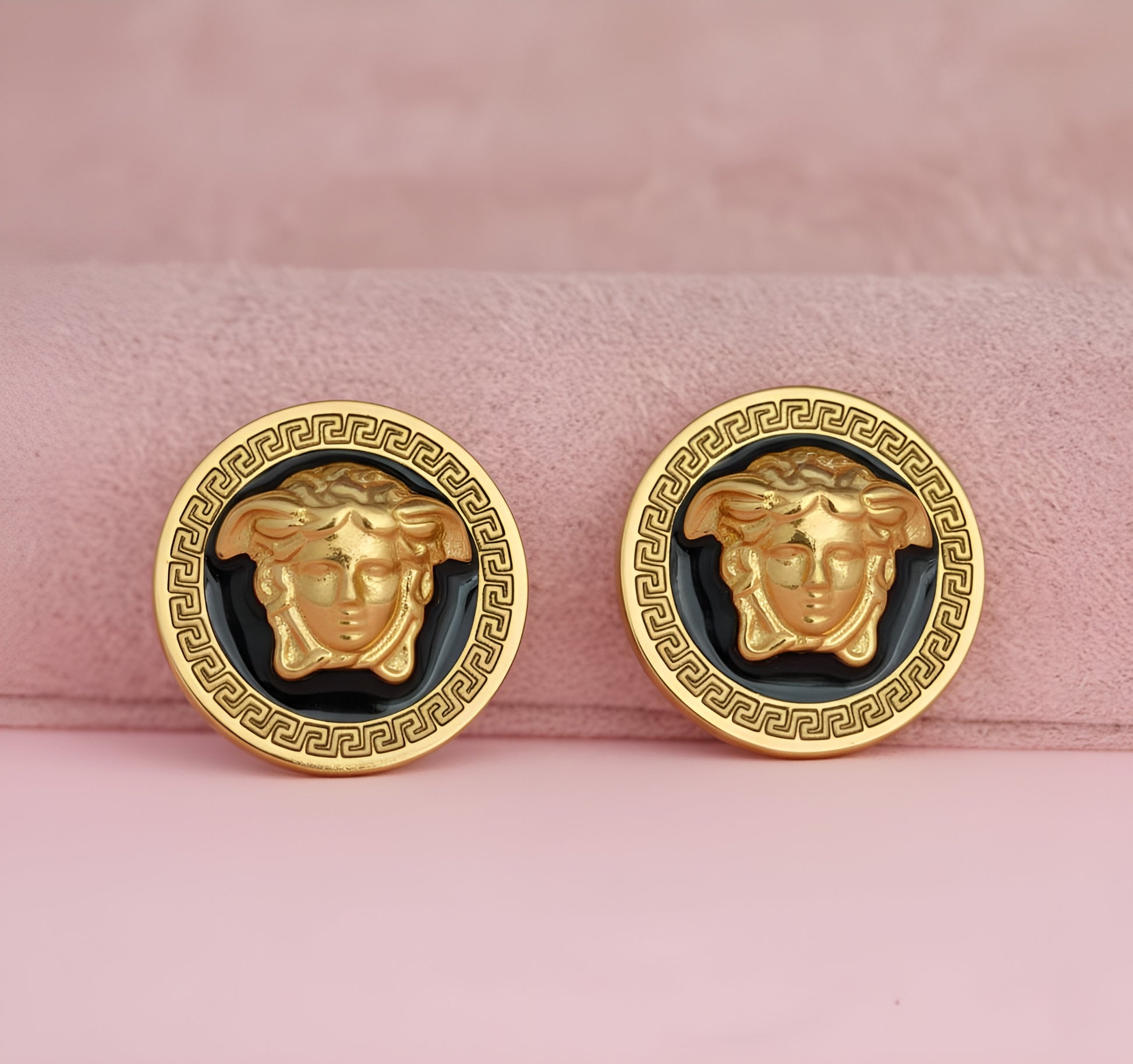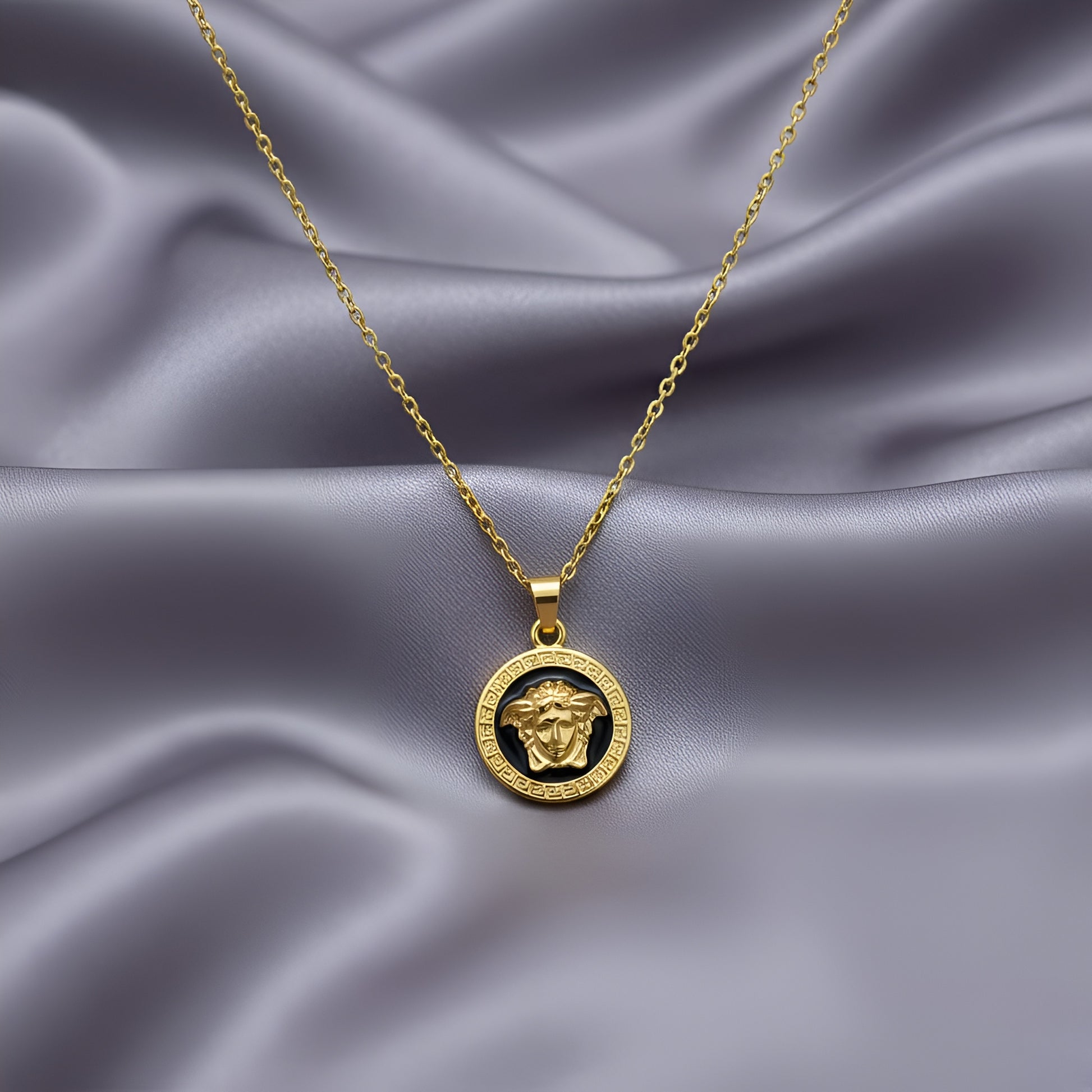 Discover the perfect solution to elevate your style with the Stainless Steel Gold Plated Verse Black Pendant and Studs. This tops locket set effortlessly blends elegance and versatility, making it a must-have addition to any jewelry collection. Its eye-catching combination of gold plating and black accents creates a striking contrast that complements both casual and formal outfits.